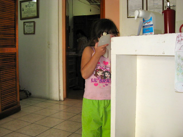 I went into Chapala to get the results of my lab tests. While I was waiting for the woman to type it up for me, her cute daughter let me take these photos of her. Her toy was a latex glove filled with water. She was very shy but finally she warmed up to me and came closer to me. It was a special part of my day. On the other hand, the lab tests were not so special. High Cholesterol. I have been eating too much good food.